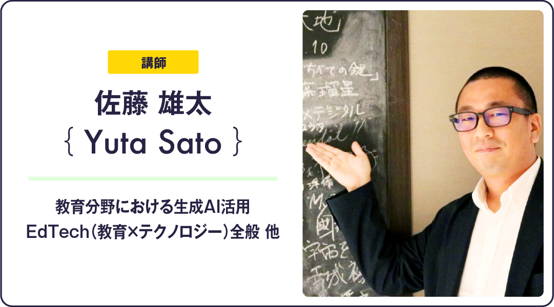 【講師】佐藤雄太/教育分野における生成AI活用、EdTech(教育×テクノロジー)全般 他