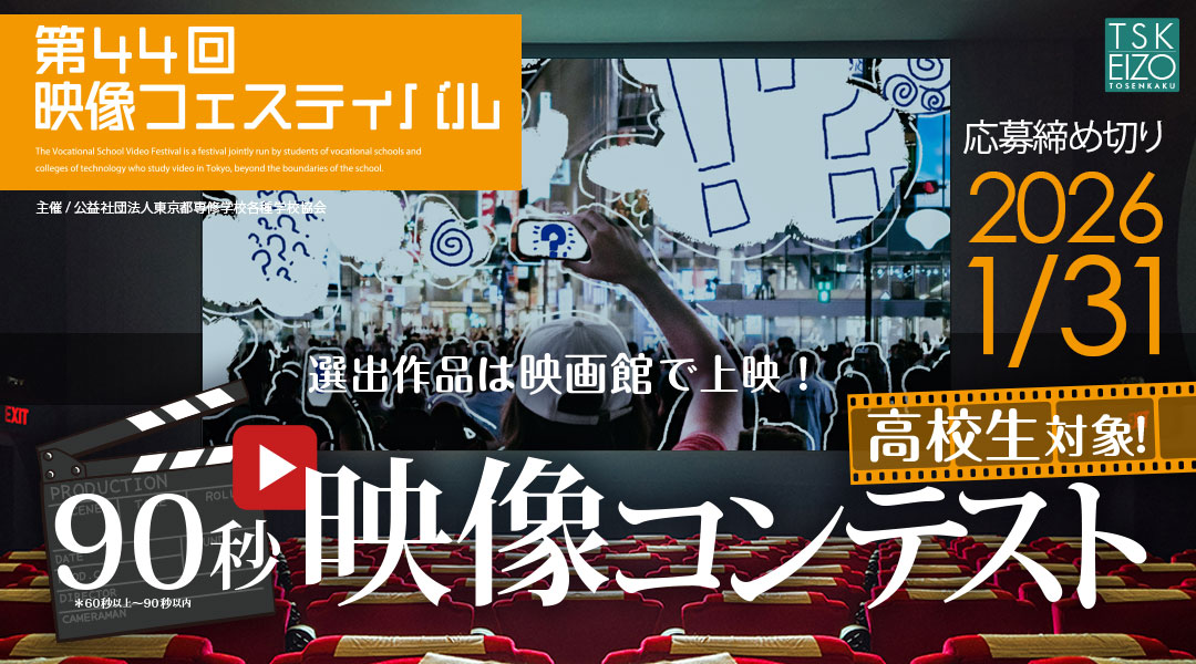 昨年に引き続き、多くの高校生の皆さんに「映像」の魅力を知ってもらいたいという想いから、高校生限定の「90秒映像コンテスト」を開催いたします。