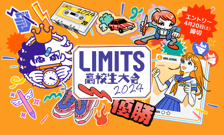 主催 LIMITS 高校生大会 実行委員会 参加資格 ・高等学校及び高等学校に準ずる教育機関に在学中であること 例)高校生・定時制高校生・高等専門学校生(3年生まで) ・日本国内在住であること ・1チーム1〜3名で構成されていること ・チームメンバー全員が同じ学校、同じキャンパスに在籍していること ・同学校、同キャンパスからは2チームまで出場可能 ・同一人物が複数のチームに所属することはできない 〆切 -