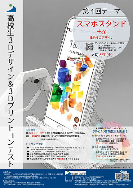 主催 秋田県立大学 システム科学技術学部 機械工学科 参加資格 ■レギュラー部門:3D-CAD経験のある高校生 (工業系高校向け) ■一般部門:経験不要。3D-CAD体験教室の参加推奨 (中学生も応募可) 〆切 -